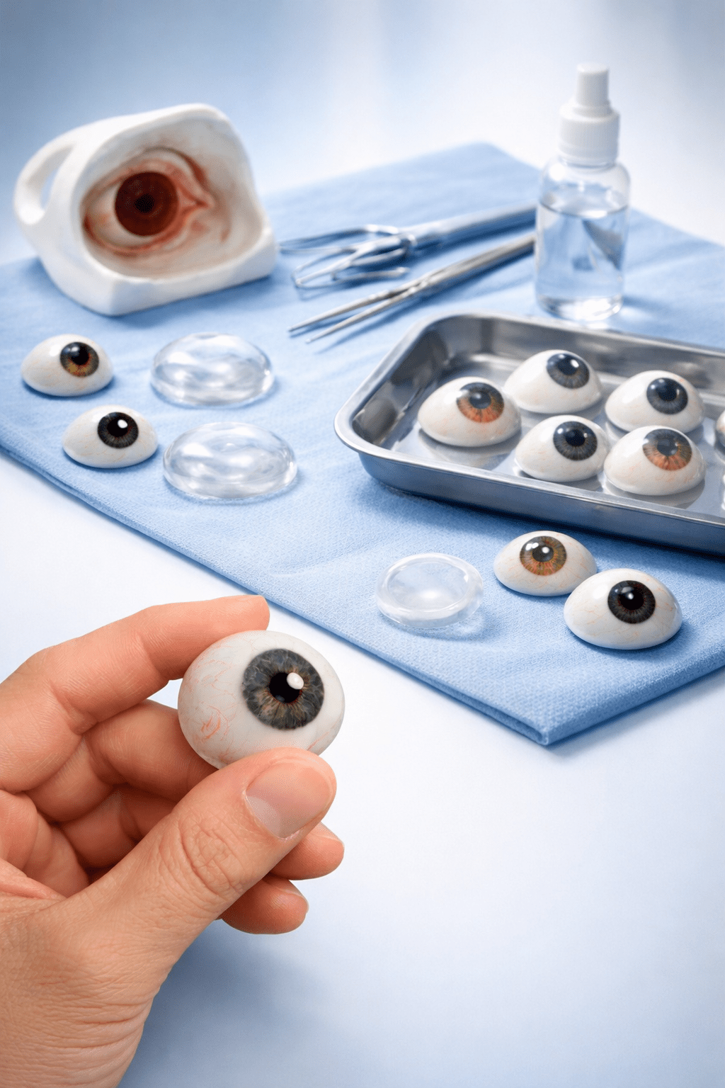 The artificial eye is fitted to replace the lost volume of the socket and to restore natural appearance and movement. It is fitted after enucleation of the anterior segment of ocular evisceration, helping protect the socket tissues and restore facial symmetry.
