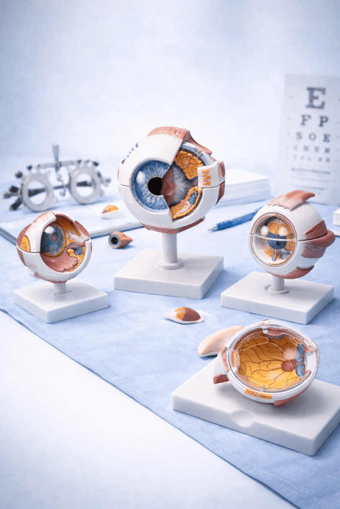 cross section eye models depicting various internal ocular structures accurately.